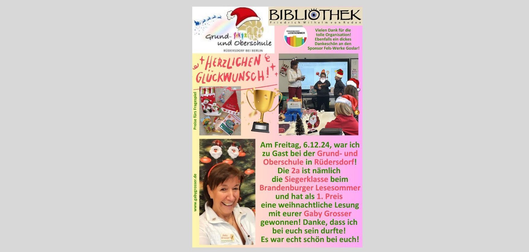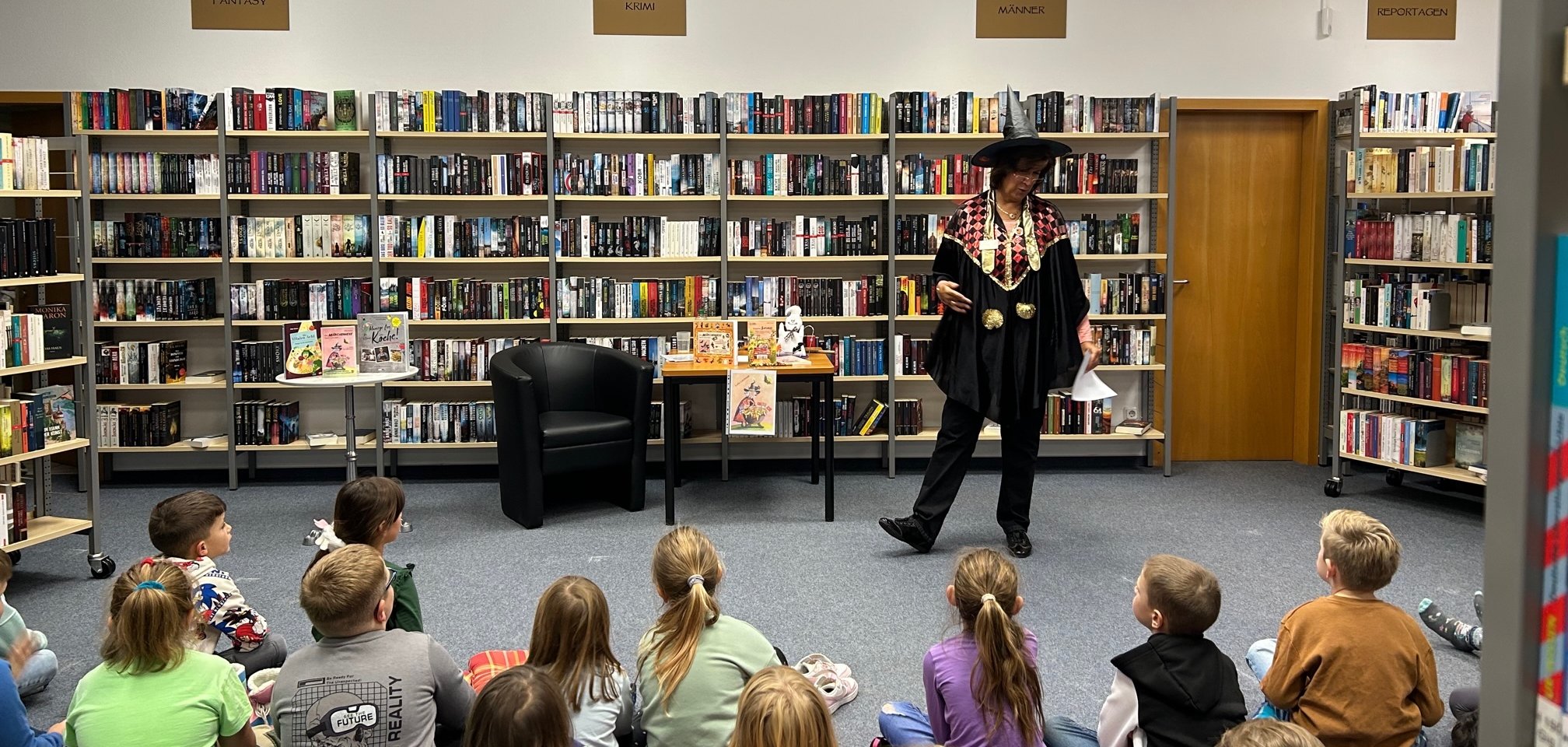 Die Rüdersdorfer Kinderbuchautorin Gaby Grosser war anlässlich der 34. Berliner Märchentage am 08.11.2023 mit der Märchenhexe Lula Lachmal zu Gast in der Friedrich-Wilhelm-von-Reden-Bibliothek.